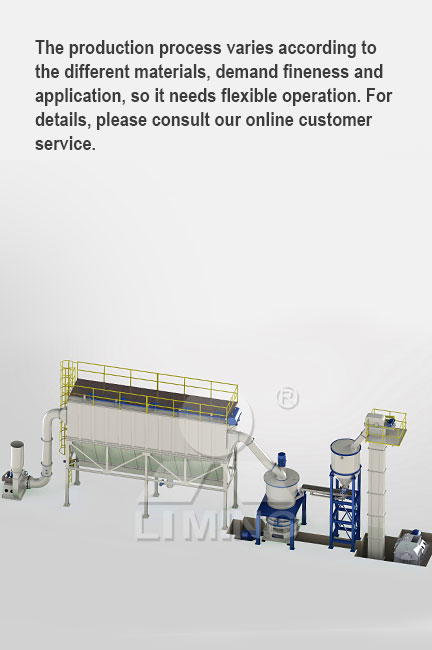 Fine powder complies with the fineness with airflow go through the pipe into the dust collector for separation and collection. The finished powder collected by the delivery device is delivered to the finished product bin, and then packed uniformly with the powder tanker or automatic packing machine.